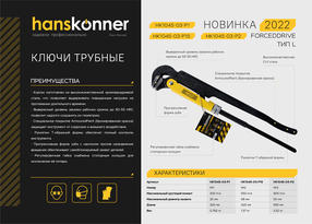 HK1045-03-P1 Ключ трубный рычажный 1", №1, 320мм, 90°, CrV сталь, закалённые губки, Hanskonner