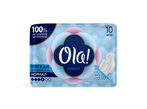 ОЛА Прокладки классические с крыльями нормал 10шт.Мягкая поверхность в инд.упак.