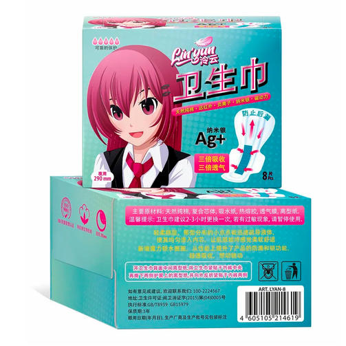 LIN'YUN АНИМЕ Ночные гигиенические прокладки, НОЧЬ (4-5 капель) 8шт. LYAN-8