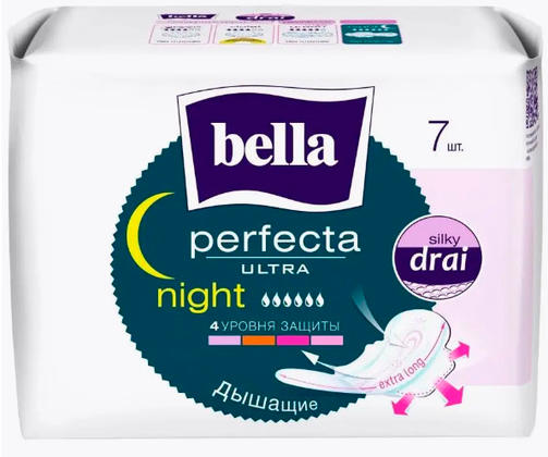 BELLA Perfecta Ultra Проклдки женские гигиенические супертонкие Nifht с покрытием silky drai, 7 шт.
