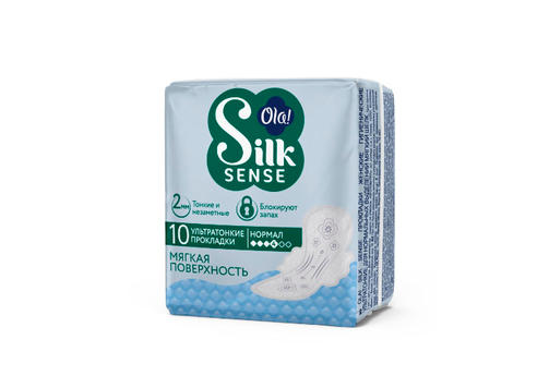 Ola silk sense прокладки ультратонкие для нормальных выделений мягкий шелк 10 шт. - женские прокладки для критических дней ультратонкие, без аромата. Ультратонкие прокладки для критических дней размера «Нормал» - мягкая поверхность, тонкие и незаметные. Быстро впитывают влагу, препятствуя прохождению ее обратно на поверхность. Суперабсорбент в составе ядра прокладки быстро превращает жидкость в гель, удерживая ее внутри и предотвращая протекания и появление неприятного запаха. Таким образом, поверхность прокладки остается сухой, даже если содержит большое количество жидкости. Мягкая поверхность прокладки не вызывает раздражений даже у самой чувствительной кожи. Широкие тройные крылышки обеспечивают надежное крепление прокладки к белью. Толщина прокладки всего 2 мм, что делает ее совсем незаметной даже под обтягивающей одеждой. Рекомендуется менять прокладку не реже, чем каждые 4 часа. Бренд Ola! - это современная и высокотехнологичная продукция средств женской гигиены 140,00 ₽ / шт