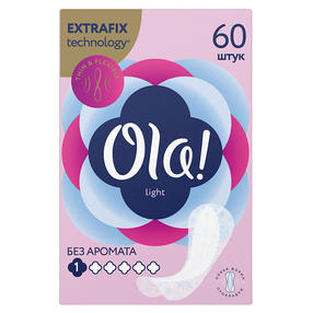 Ультратонкие ежедневные прокладки Ola! Light позволяют оставаться вашему белью свежим в течение всего дня. Специальная форма прокладки подходит к любому типу нижнего белья и имеет толщину всего 1 мм, что позволяет прокладкам быть совершенно незаметными. Гибкие и мягкие материалы удобно принимают форму нижнего белья и совсем не ощущаются при носке. Без аромата. 219,48 ₽ / шт