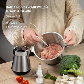 Измельчитель кухонный электрический GALAXY LINE GL2380 - многофункциональный прибор, сочетающий в себе функции нарезки и измельчения. Приготовление вкусных супов, свежих салатов гарниров и соблазнительных десертов станет быстрым и легким занятием с кухонными чопперами GALAXY LINE! Прочные и острые двойные ножи с четырьмя лезвиями из нержавеющей стали эффективно и быстро измельчает продукты. Такие ножи сохраняют свою остроту долгое время, не деформируются, легко моются, устойчивы к коррозии и воздействию солей даже при длительном использовании. Прочная чаша изготовлена из особой марки нержавеющей стали AISI 304, которая устойчива к коррозии и воздействию солей, а также препятствует размножению микробов. Объем чаши – 1,8 л позволяет измельчить большое количество продуктов. Высокая мощность 500 Вт, 2 скорости и импульсный режим делают процесс приготовления быстрым и удобным. Резиновое основание препятствует скольжению, надежно фиксирует чоппер-измельчитель на рабочей поверхности. Позвольте себе новые технологии GALAXY LINE для абсолютного комфорта! Готовьте с удовольствием вместе с GALAXY LINE! Номинальная потребляемая мощность, Вт: 400 Максимальная мощность, Вт: 500 Параметры питания, В/Гц: 220-240/50 Мощность, Вт: 500 Объем, л: 1.8 Материал корпуса: Пластик / Сталь Импульсный режим: Да Прорезиненные ножки: Да Материал ножа: Нержавеющая сталь AISI 304 Нож: Двойной Объем чаши, л: 1,8 Материал чаши: Нержавеющая сталь AISI 304 Режимы работы: Импульсный режим Длина шнура питания, м: 1 Габаритные размеры упаковки, см: 19,5х19,5х21,5 Вес брутто, кг: 1,47 В комплекте: Лопатка, защитный кожух для ножей Гарантийный срок: 2 года 2 500,00 ₽ / шт