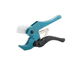 Универсальные ножницы для резки изделий из ПВХ Gross 78424 с порошковым покрытием рукояток применяются для разрезания пластиковых труб диаметром до 42 мм, а также профилей, плинтусов, галтелей, реек, планок, резиновых шлангов и других предметов. Нож у инструмента прямой, поэтому он может резать плоские заготовки. Ножницы пригодятся для выполнения сантехнических и отделочных работ. Преимущества Режущее полотно устойчиво к износу, т.к. изготовлено из высокопрочной японской стали SK-2. Инструмент не подвержен коррозии, поскольку его лезвие хромировано, а корпус защищен порошковым покрытием. Работа с ножницами долго не вызывает усталости благодаря модернизированному храповому механизму. Ножницы удобны в хранении и транспортировке за счет блокировки рукояток в сведенном положении. 1 563,00 ₽ / шт