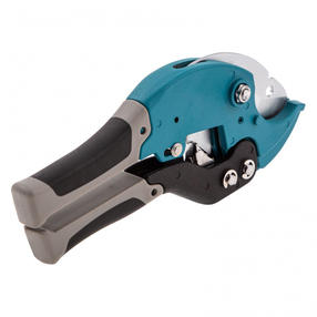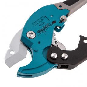 Ножницы для резки изделий из ПВХ Gross 78420 с двухкомпонентными рукоятками и рабочим столиком используются для работы с резиновыми шлангами и пластиковыми заготовками диаметром до 36 мм — трубами, плинтусами, профилем, галтелями, планками, рейками. Трапециевидное полотно с двумя рабочими кромками обеспечивает высокую производительность инструмента. Стол, устанавливаемый на опорную поверхность ножниц, позволяет резать плоские предметы. Инструмент рекомендован для профессионального применения. Преимущества Рабочее полотно из высококачественной японской стали SK-5 отличается прочностью и износостойкостью. Лезвие твердостью 53-56 HRC обладает высокой режущей способностью. Улучшенный 6-ступенчатый храповый механизм облегчает выполнение работ. Корпус с порошковым покрытием и никелированное лезвие устойчивы к коррозии. Эргономичные двухкомпонентные рукоятки обеспечивают удобный захват и не выскальзывают из ладони. Фиксатор удерживает рукоятки в сложенном положении для безопасного хранения и транспортировки. 3 232,00 ₽ / шт