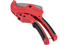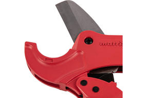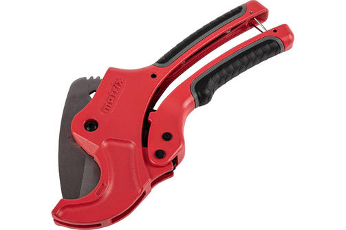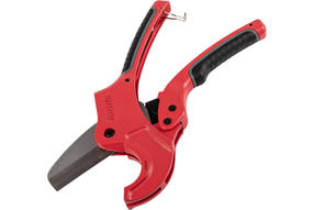Ножницы для резки изделий из ПВХ Matrix 78411 с лезвием из нержавеющей стали и функцией автоматического раскрытия применяются для работы с пластиковыми трубами диаметром до 42 мм, а также для разрезания профилей, плинтусов, галтелей, реек, планок, резиновых шлангов и других предметов. Прямой нож инструмента позволяет резать плоские заготовки. Ножницы пригодятся для выполнения сантехнических и отделочных работ. Преимущества Прочность и долговечность — режущее полотно изготовлено из нержавеющей стали 3CR13. Защита от коррозии — на корпус нанесено порошковое покрытие. Высокая эффективность — механизм автоматического раскрытия позволяет выполнять работу быстрее, не прикладывая больших усилий. Комфортная работа без ощущения усталости — храповой механизм минимизирует прикладываемые усилия. Безопасное хранение и транспортировка — рукоятки можно заблокировать в сведенном положении. Для корректной работы инструмента, чтобы предотвратить перекос лезвия относительно ПВХ-трубы, рекомендуется, чтобы отрезаемая часть была больше или равна внешнему диаметру ПВХ-трубы. В противном случае может возникнуть перекос лезвия, что также может привести к поломке лезвия/инструмента. 1 900,00 ₽ / шт