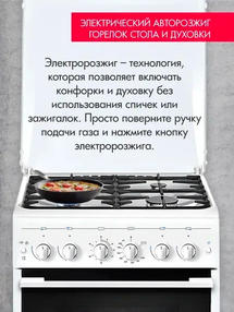 Электророзжиг горелок, кнопка розжига на панели Электророзжиг – это технология, которая позволяет включать конфорки без использования спичек или зажигалок. Кнопка розжига на панели позволяет удобно и безопасно начать готовку ваших любимых блюд. Терморегулятор (термостат) Термостат – это неотъемлемый элемент любой духовки. Он осуществляет контроль за температурой внутри печи посредством включения/выключения нагрева. Гриль электрический Электрический гриль прост и удобен в использовании, потребляет небольшое количество энергии и позволяет приготовить мясо или курицу с хрустящей и золотистой корочкой. Вертел с электроприводом Вертел в духовке позволяет приготовить блюда с равномерной обжаркой и хрустящей корочкой. С его помощью можно приготовить: курицу-гриль, шашлык, овощи и гарниры Съемные проволочные направляющие духовки Проволочные направляющие обеспечивают надежную фиксацию противней и решеток в духовых шкафах, предотвращая их смещение и падение. Чугунные решетки горелок стола Чугунные решетки обладают высокой прочностью и долговечностью. Они не боятся высоких температур и не деформируются со временем. Электророзжиг духовки, кнопка розжига на панели Электророзжиг – это технология, которая позволяет включать духовой шкаф без использования спичек или зажигалок. Кнопка розжига на панели позволяет удобно и безопасно начать готовку ваших любимых блюд. Газ-контроль духовки Система газ-контроля в духовом шкафу обеспечивает безопасность, предотвращая возможность утечки газа в случае отсутствия пламени Эмаль легкой очистки SMART CERAMIC SMART CERAMIC - это специальный материал, который используется для покрытия внутренних стенок духовых шкафов изделий TM GEFEST. Главной особенностью данной эмали является ее гладкость и способность противостоять загрязнениям. 29 100,00 ₽ / шт