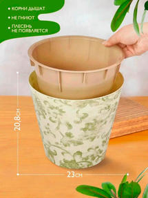 Кашпо для цветов пластиковое, объемом 5л со вставкой на 4,5л для уличных и домашних растений, состоит из двух частей: плотного цветного наружного кашпо и внутреннего технического горшка с дренажными отверстиями. Пластик не подвержен деформации, не содержит вредных примесей и не выгорает на солнце. Гладкая поверхность вставки мешает корням прирастать к стенкам горшка и облегчает пересадку растения. Цветочная композиция при перевалке сохраняется без повреждений и любимый цветок не травмируется. Пространство между двумя частями под дном цветочного горшка выполняет функции поддона и обеспечивает терморегуляцию и питание корням. Благодаря дренажным отверстиям, вода в грунте не застаивается, излишки скапливаются внутри кашпо, и при необходимости подпитывают растение снизу. Горшок для цветов из прочного пластикового материала надолго сохраняет первоначальный внешний вид, легко моется теплой водой и мало весит. Кашпо с горшком без усилий переносится на новое место, подвешивается под карниз на террасе, помещается на подоконнике или в подвесном ящике на балконе. Ваза для цветов - прекрасный элемент декора, который поможет создать уникальный дизайн помещения, органично дополнит интерьер и удачно впишется в индивидуальный стиль квартиры или дома. Оригинально смотрится на столике или полке в гостиной аккуратное кашпо с цветущим комнатным растением. Классический цветочный горшок - подходящий декоративный аксессуар для гостиной, спальни и кухни, идеален в озеленении интерьера. Кувшин для растений выглядит стильно и актуален в оформлении. Пластиковые кашпо не царапают и не загрязняют поверхности, на которых стоят. Кашпо для цветов декоративное в качестве подвесного уличного украсит дом снаружи. Вазоны для цветов небольшого размера пригодятся для составления композиций на стеллажах и цветочных подставках. Горшок подходит для рассады, посадки комнатных цветов или ароматной зелени для кухни. Горшки для цветов London - отличный выбор для цветоводов - любителей и профессионалов. Корзина для цветов - приятный подарок для цветочницы. В детском магазине Тутси найдете необходимые товары для себя, игры и игрушки для детей и аксессуары для дома. Желаем Вам приятных покупок! 420,48 ₽ / шт