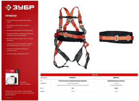 Преимущества Три элемента крепления - кольцо на спине и два боковых кольца Описание Страховочная привязь «ЗУБР» – надежное средство защиты от падения с высоты. Она служит элементом страховочной системы для охвата тела с целью предотвращения падения. Применение Страховочная привязь служит элементом страховочной системы для охвата тела с целью предотвращения падения. 3 785,10 ₽ / шт