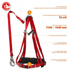 ЗУБР УРАЛ, 3 точки крепл., ленточ. строп с амортиз., лямочный пояс с наплеч.и набедрен.лямками 11583
