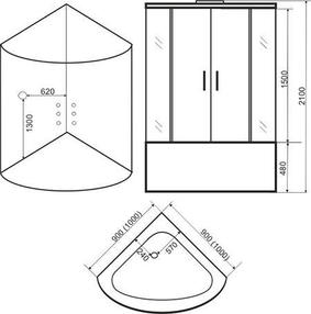 Душ кабина AOCLEAR AKL-1335 90/210 В/П Г/М мат/хр арк.