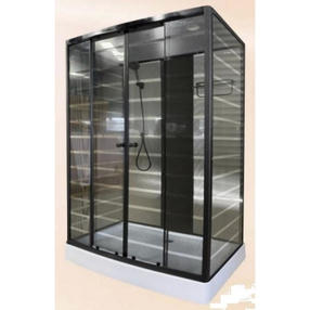 Передние и боковые стекла: 4 мм, прозрачные с черной полосой; Двери 5 мм. Задние стекла: 4 мм, белые в металлическом каркасе. Высота поддона 15 см. С БОРТИКОМ. Черная панель, черный ручной душ с держателем, стеклянная полка, смеситель, тропический душ, ролики, ручки, черный магнит на двери, черные отбойники воды, сифон Марка / Бренд ДАНА FM радио Нет Антискользящее покрытие Нет Безсиликоновая сборка Да Вентиляция Да Высота без упаковки, мм 2150 Гарантия производителя, лет 1 Гибкая подводка в комплекте Нет Гидромассаж Нет Гидрофобное покрытие стекла Нет Глубина без упаковки, мм 800 Глубина поддона, мм 50 Зеркало Нет Каркас поддона Металлический Количество дверей 2 Количество транспортных упаковок 4 Конструкция дверей Раздвижные Материал душевого поддона ABS пластик Материал задних стенок Стекло Материал профиля Алюминий Материал фронтальных стенок Стекло Мультимедиа Нет Нагрузка на поддон, кг 350 Наличие крыши Да Наличие сиденья в комплекте Нет Наличие центральной панели Да Озонотерапия Нет Ориентация при установке Универсальная Освещение Нет Поддон в комплекте Да Полочка Да Регулировка ножек Нет Ручной душ Да Сифон в комплекте Да Соединение шланга в месте подключения, дюймов 1/2 Тип поддона Низкий Толщина стекол, мм 5 Тропический душ Да Управление душевой кабиной Механическое Форма душевой кабины Прямоугольная Хромотерапия Нет Цвет задних стенок Белый Цвет профиля Чёрный Цвет дверных стекол Прозрачный с узором ПОЛОСЫ Цвет фронтальных стенок Прозрачный с узором ПОЛОСЫ Часы Нет Ширина без упаковки, мм 1160 Высота поддона, мм 150 Материал центральной панели Пластик Цвет центральной панели Чёрный 49 800,00 ₽ / шт