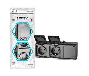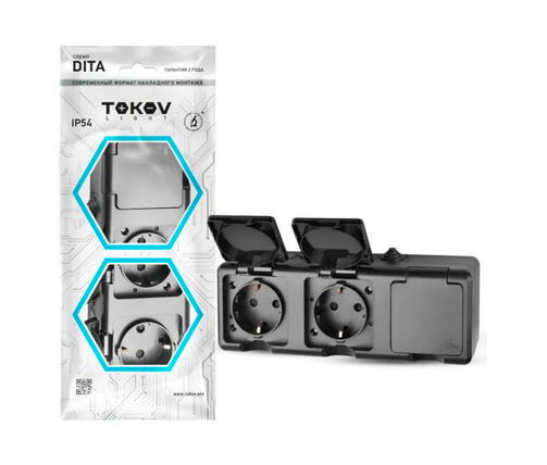 Розетка 3-м ОП Dita 16А IP54 250В с заземл. с крышкой карбон TKL-DT-R3Z-C14-IP54 1792458