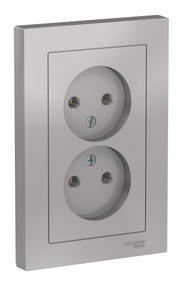 Розетка 2-м СП AtlasDesing 16А IP20 без заземл. в сборе алюм. SE ATN000320