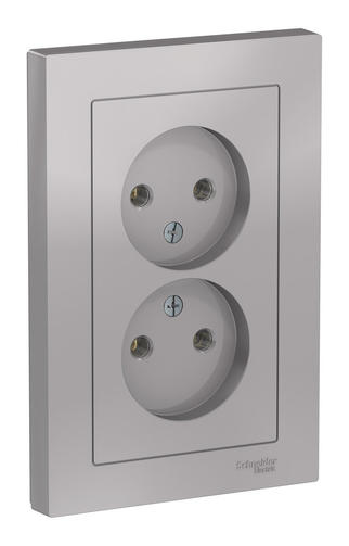 Розетка двойная Schneider Electric AtlasDesign (в сборе, цвет алюминий) без заземления и без шторок подходит для сетей 250 В, на ток 16 А.- Лицевые детали из качественного ABS-пластика, устойчивого к царапинам и УФ-излучению.- Усиленные прямые монтажные лапки для лучшей фиксации механизма в монтажной коробке.- Двойная розетка позволяет подключить два устройства в одном месте.- Изделие поставляется в комплекте с рамкой того же цвета. 590,00 ₽ / шт
