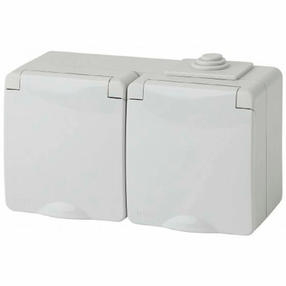 Розетка 2-м ОП Эра Эксперт 11-2603-03 16А IP65 горизонт. 250В 2х2P+E сер. Эра Б0035991 1306385