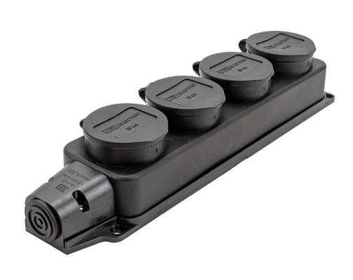 Розетка четырехместная с заглушками каучук 2Р+РЕ 16А 250В IP44 TDM предназначена для подключения электрооборудования и электроинструмента в сложных эксплуатационных условиях как внутри помещений, так и на открытом воздухе. Высокая ударная прочность и износостойкость корпуса обеспечивают долгий срок службы розетки. Корпус выполнен из каучука, который обладает высокой износостойкостью и стойкостью к химическому воздействию, а также превосходным электрическим изолятором. Благодаря корпусу из каучука и степени защиты IP44, разъемы используются при высокой и низкой температуре, в пыли, в помещениях с повышенной влажностью и других неблагоприятных условиях. Наличие на корпусе ребер препятствует соскальзыванию рук при разъединении розетки и вилки. Крышки обеспечивают защиту от опадания внутрь разъема пыли, влаги и надежно закреплены. Розетка оснащена специальным сальником для кабеля различного сечения, что позволяет легко и быстро подключить электрооборудование. Высота розетки составляет 170 мм, глубина – 290 мм, ширина – 20 мм. Тип крепления – винтовое крепление. Цвет розетки – черный. Выбирая розетку четырехместную с заглушками каучук 2Р+РЕ 16А 250В IP44 TDM, вы получаете надежный и долговечный продукт, который обеспечит безопасное и стабильное подключение электрооборудования в различных условиях эксплуатации. 780,00 ₽ / шт