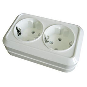 Розетка двойная 2П+3 открытой установки IP20 16А 250В (керамика) белая "Ладога" TDM