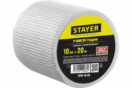 STAYER FIBER-Tape, 10 см х 20 м, 3 х 3 мм, самоклеящаяся серпянка, Professional (1246-10-20)