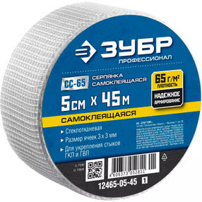 ЗУБР 5 см х 45 м, 3 х 3 мм, самоклеящаяся, стеклотканевая сетка, Профессионал (12465-05-45)