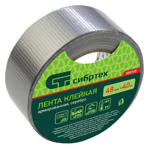 Лента клейкая армированная, 48 мм х 40 м, серебро Сибртех 888165