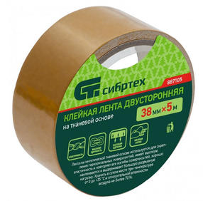 Лента клейкая двусторонняя, 38 мм х 5 м, на тканевой основе Сибртех 887105