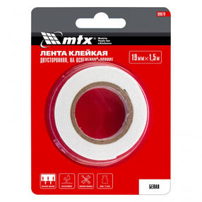 Лента клейкая на вспененной основе, двусторонняя, белая, 19 мм х 1.5 м Matrix 89079