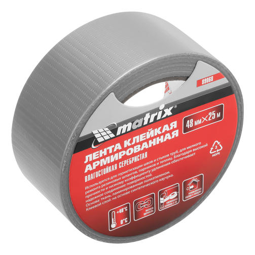 Лента армированная, влагостойкая, 48мм х 25м, серебристая// Matrix 89068