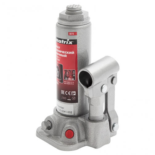 Домкрат гидравлический бутылочный, 2 т, h подъема 181–345 мм// Matrix 50715