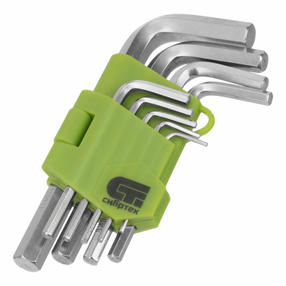 Набор ключей имбусовых HEX, 1,5–10 мм, 45x, закаленные, 9 шт., короткие, никель. //СИБРТЕХ 12317