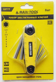 Набор складной имбусовых ключей 18777 HEX 1.5-2-2.5-3-4-5-6-8мм(12шт/уп)(48уп/кор) MaxiTool