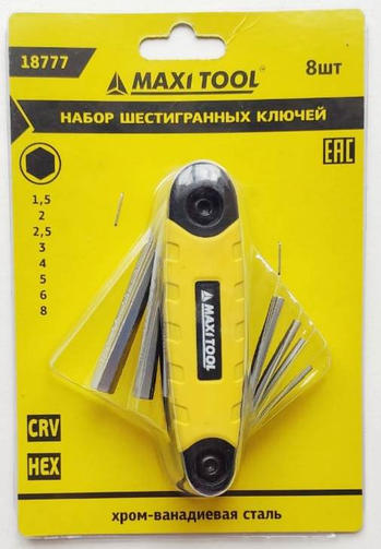 Набор складной имбусовых ключей 18777 HEX 1.5-2-2.5-3-4-5-6-8мм(12шт/уп)(48уп/кор) MaxiTool
