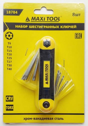 Набор складной имбусовых ключей 18784 TORX T9/10/15/20/25/27/30/40 (12шт/уп)(48уп/кор) MaxiTool