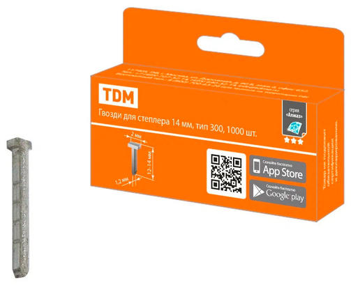 Гвозди для степлера 14 мм, тип 300, 1000 шт, "Алмаз" TDM