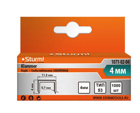 1071-02-04 Скобы для степлера 4мм (тип 53) в упак. 1000шт,оцинкованные,закаленные, Sturm!