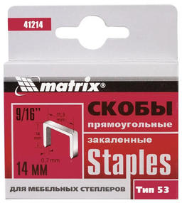 Скобы, 14 мм, для мебельного степлера, закаленные, тип 53, 1000 шт Matrix 41214