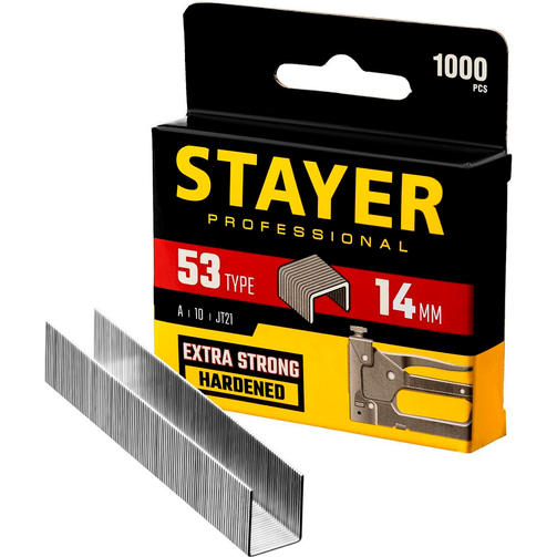 STAYER тип 53 (A/10/JT21), 14 мм, 1000 шт, калибр 23GA, скобы для степлера, Professional (3159-14)