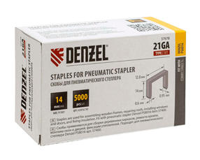 Скобы 21GA для пнев. степл., 14мм, шир. - 0,95мм,тол. - 0,6мм, шир. скобы-12,8мм,5000шт Denzel 57678