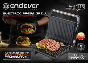 Гриль Endever Grillmaster 115 серебристый/черный