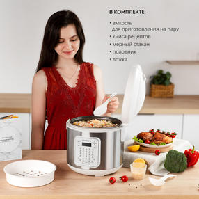 Мультиварка GALAXY LINE - незаменимый помощник на вашей кухне. 31 программа приготовления позволит создать самые разнообразные и вкусные блюда. Рассыпчатый плов, сочное мясо, нежнейшее суфле и многое другое - вы сможете выполнить любые кулинарные идеи! Модель имеет 5 литровую чашу с антипригарным покрытием, которое не влияет на запах еды и не боится пригорания, что обеспечивает приготовление абсолютно любого блюда. Мультиварка помогает приготовить завтрак, обед и ужин для все семьи! Готовьте быстро, легко и со вкусом вместе с GALAXY LINE! 5 391,00 ₽ / шт
