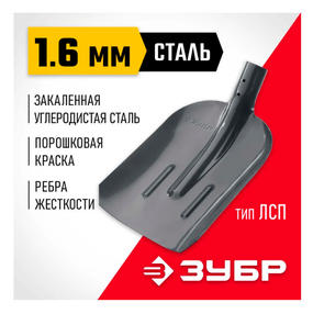 ЗУБР Мастер, 360 х 230 мм, полотно 1.6 мм,с рёбрами жёсткости, без черенка, совковая лопата 39428
