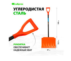 Лопата для уборки снега стальная, 470х335х1335 мм, стальной черенок СИБРТЕХ 61656