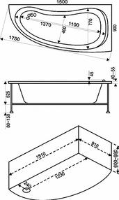 Ванна акрил. АЛЕГРА 150-90 прав.с карк. б/пан б/сиф В 00002