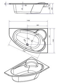 Ванна асим акрил Cersanit KALIOPE 170х110 с ногами правая, белый