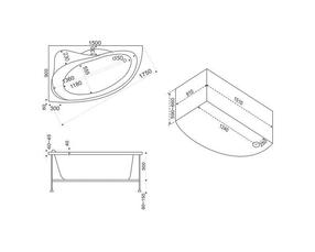 Ванна акрил. ВЕКТРА 150-95 лев с карк б/пан б/сиф В 00007