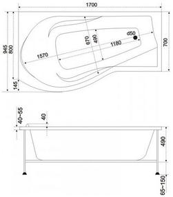 Ванна акрил. КАПРИ 170-80 левая с карк б/пан б/сиф В00015