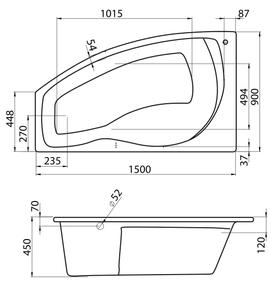 Ванна акрил. МАЙОРКА 150-90 левая б/рамы б/п б/сиф 1.WH11.1.984
