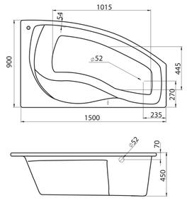 Ванна акрил. МАЙОРКА 150-90 правая б/рамы б/п б/сиф 1.WH11.1.985