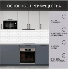 Декоративный кухонный фартук 3000*600*1,3мм преобразит интерьер Вашей квартиры и защитит стены от загрязнений. Это практично и выгодно. ОСНОВНЫЕ ПРЕИМУЩЕСТВА:- Прочность и эластичность.- Устойчивость к температурным перепадам.- Простота в уходе- Удобная транспортировка, индивидуальная упаковка.- Монтаж совершается на жидкие гвозди и не требует специальных навыков. РЕКОМЕНДАЦИИ ПО УСТАНОВКЕ:- Подготовить стену. Очистить поверхность от грязи и пыли, обезжирить и высушить.- Перед монтажом фартук необходимо развернуть и оставить на ровной поверхности до выпрямления.- При необходимости отрезать нужную длину фартука.- Сделать технологические отверстия под розетки с помощью канцелярского ножа.- Нанести клей на панель по всей площади крепления. При необходимости клей можно также нанести на стену.- Прижать кухонный фартук на стену к месту крепления. ДОПОЛНИТЕЛЬНЫЕ РЕКОМЕНДАЦИИ: - Чтобы фартук на стену для кухни служил вам дольше, мы рекомендуем использовать закаленное стекло для фартука, крышку от плиты или защитный экран. Его можно установить в местах нагрева - у конфорок варочной панели. Установка защитного экрана обезопасит кухонный фартук от перегрева и деформации под влиянием высоких температур. - Фартук на стену можно мыть мягкими неабразивными моющими средствами или мыльным раствором с помощью тряпочки или губки без использования абразивного слоя. Не рекомендуется мыть панель агрессивными или абразивными средствами, а также металлическими и жесткими губками. 1 820,00 ₽ / шт
