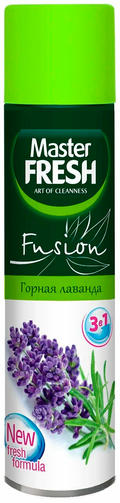 Master Fresh Освежитель воздуха Горная лаванда 300мл. Легкий нежный аромат освежителя воздуха Master FRESH Fusion надолго сохранит ощущение свежести и чистоты в Вашем доме. Идеальное решение для создания уюта и свежести в вашем доме. Нежные ноты горной лаванды мгновенно наполнят пространство приятным ароматом, успокаивая и расслабляя. Специально разработанная формула BIO fresh formula обеспечивает три-активное действие продукта: свежесть, аромат и нейтрализатор неприятных запахов. Создайте атмосферу гармонии и спокойствия вместе с освежителем воздуха “Горная лаванда” от Master Fresh! Оригинальные парфюмерные отдушки. Не содержат озоноразрушающих хладонов. Состав: Вода; углеводородный пропеллент 15-30%; отдушка <5%; НПАВ <5%; консерванты <5%; пропиленгликоль <5%. 100,00 ₽ / шт